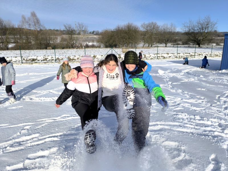 Leden nám ukázal, jak dokáže být krásný, když školní hřiště zahalil do bílé sněhové peřiny.