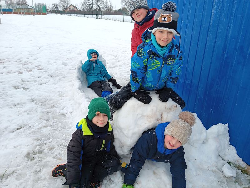 Měsíc leden byl ve školní družině ve znamení zimy a sněhových radovánek. Venku bylo plno sněhu a děti si s nadšením užívaly stavění sněhuláků, různých sněhových staveb i veselou koulovačku. Někteří si stavěli bunkry, jiní zkoušeli vytvářet malé pevnosti a nejrůznější postavičky ze sněhu.