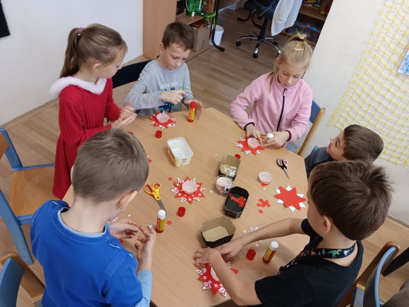 Od samého začátku měsíce se družinou nesly známé koledy – děti si s chutí zazpívaly Nesem vám noviny, Půjdem spolu do Betléma, Tichá noc a další vánoční písně, které krásně dokreslovaly sváteční náladu. Přípravy na Vánoce probíhaly v plném proudu. Děti vyráběly svícínky, kapříky pro štěstí ozdobené zlatými třpytkami i veselé vánoční trpaslíky s měkkou čepičkou. Kreativní tvoření je velmi bavilo a každé dítě si odneslo krásné výrobky, na které mohlo být hrdé.