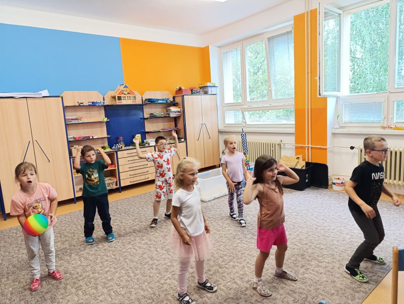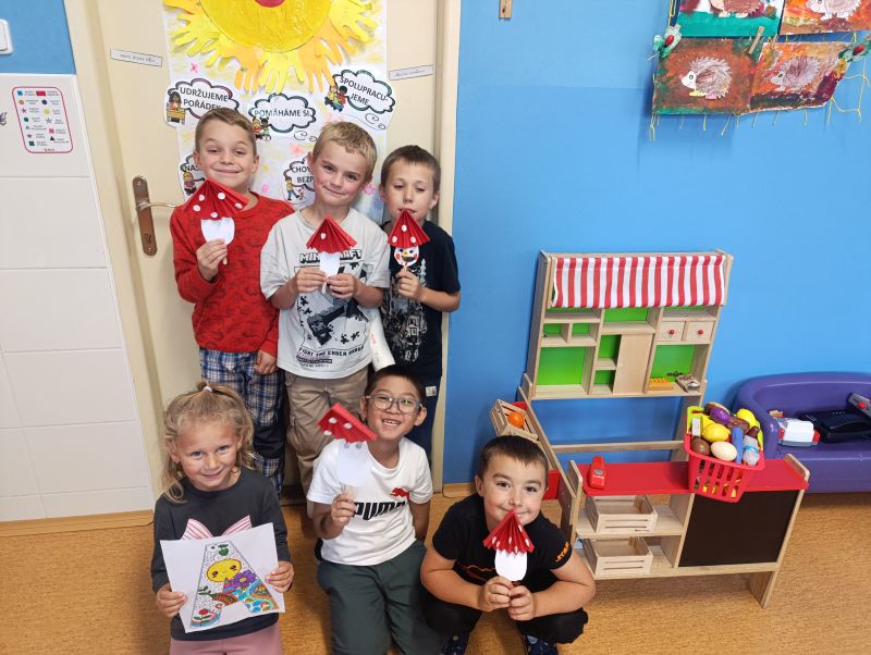 Ani pohyb nechyběl – na hřišti jsme cvičili, hráli s míčem, skákali přes švihadlo a procvičovali koordinaci při tleskacích hrách. Zvlášť oblíbené byly hry na paměť a logiku, kdy se děti navzájem povzbuzovaly a smály se společným nápadům. 🏃‍♂️⚽🧩Září nám uteklo jako voda. Jsme rádi, že jsme společně vykročili do nového školního roku s chutí a dobrou náladou, a už se těšíme, co nového nám přinese říjen! 🍁