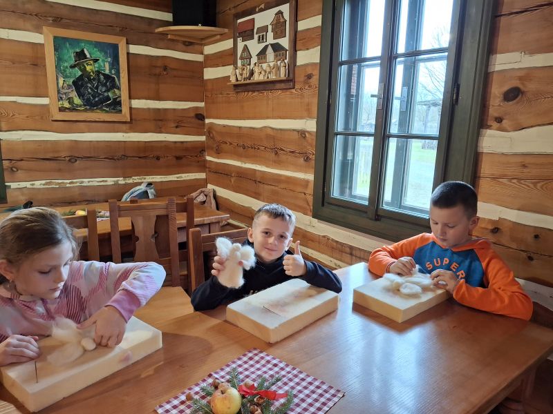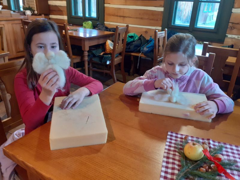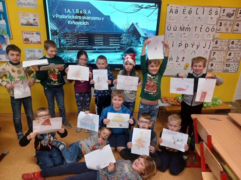 Prvňáci a třeťáci z áčka strávili úterní dopoledne v Podorlickém skanzenu v Krňovicích.